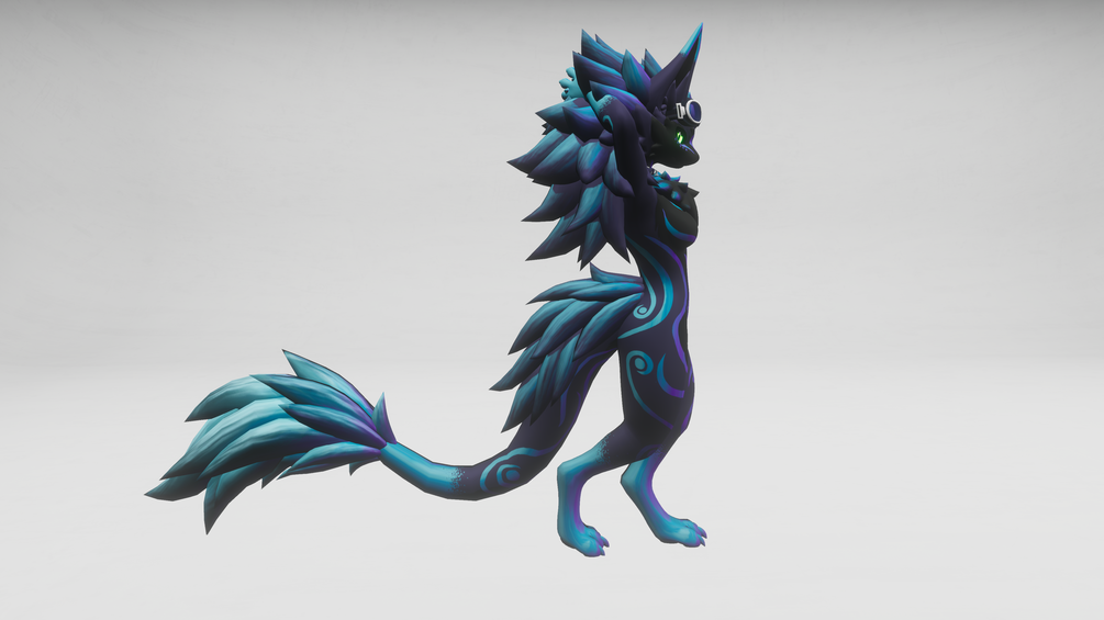 This NovaBeast is down to party! They feature hand drawn markings and emissive layers, and include a preloaded unity package with markings configured to interact with AudioLink worlds! Different sets of markings are all synced up with the bass, low mids, high mids, and trebles, and have been carefully configured to make them stand out on the dance floor. You ready to show them a good time?
